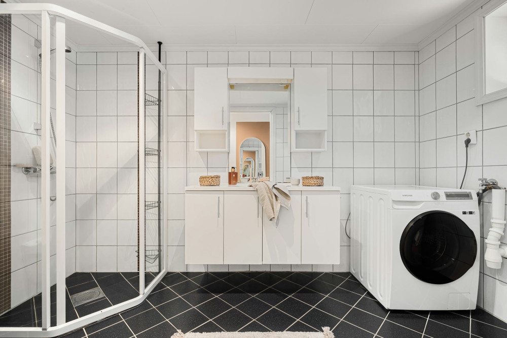 - Kombinerer vask og tørring i én maskine